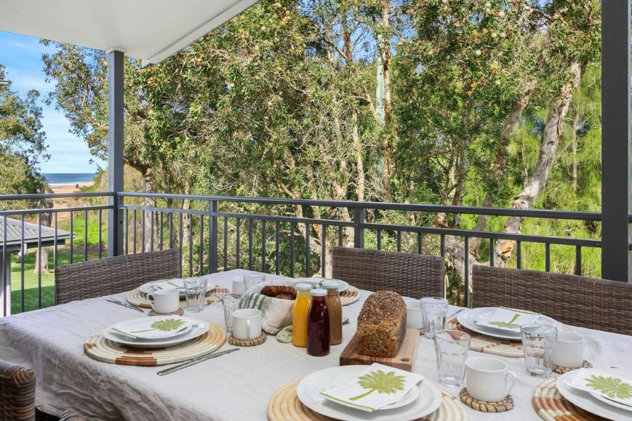 Two balcony areas with beach and lagoon vistas. Outdoor settings on both making them perfect for al fresco dining, morning coffee and BBQ’s