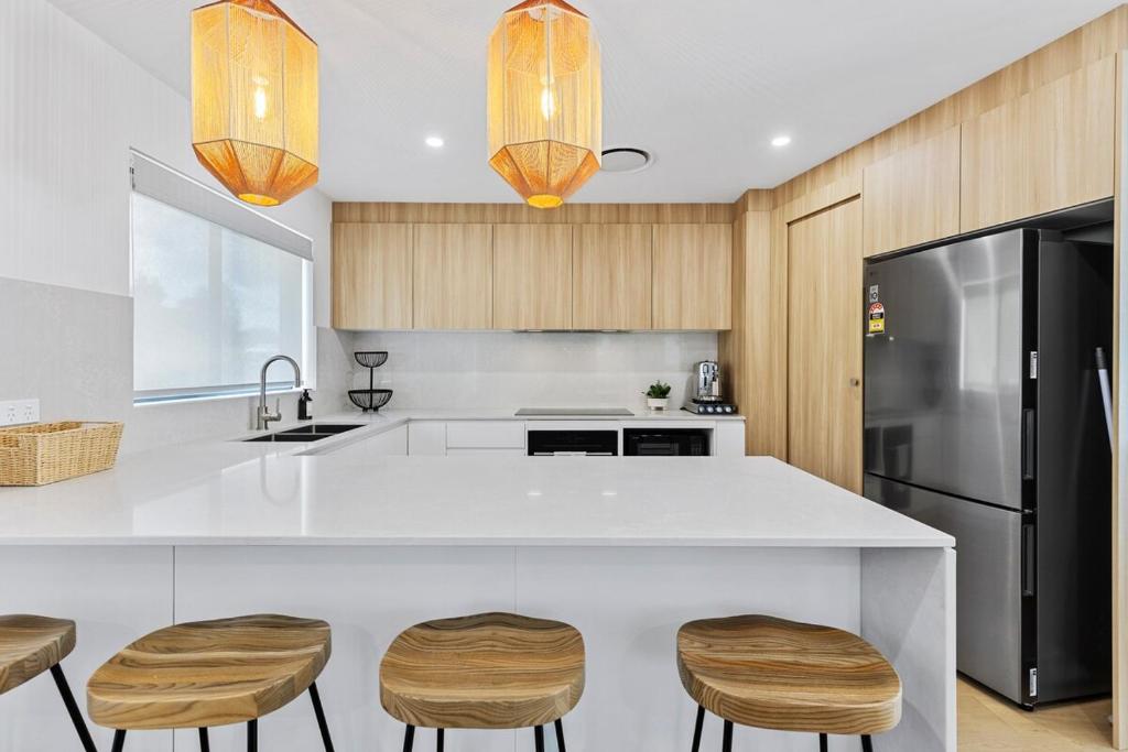 A stunning house that offers the perfect blend of modern comfort and coastal charm. Just a five minute walk to the beach and playground – it is ideal for families, friends, and even your furry companions 🐶