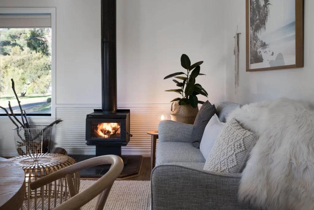 Accommodating up to 4 guests, Billabong features two bedrooms exuding a water-themed ambiance, inspired by the captivating allure of the Australian Coast. The first bedroom boasts a luxurious King-sized bed, while the second bedroom offers the flexibility of either a King or king single split setup. The cottage is thoughtfully designed in a Scandinavian style, complete with modern amenities such as a flat-screen TV ,with google chrome cast a cozy wood fire, and an inviting dining/living area. The fully equipped kitchenette (induction cooktop, bench top oven, micowave and BBQ) allows for convenient meal preparation, and the bathroom includes a refreshing shower. It’s important to note that laundry facilities are not available in the units.