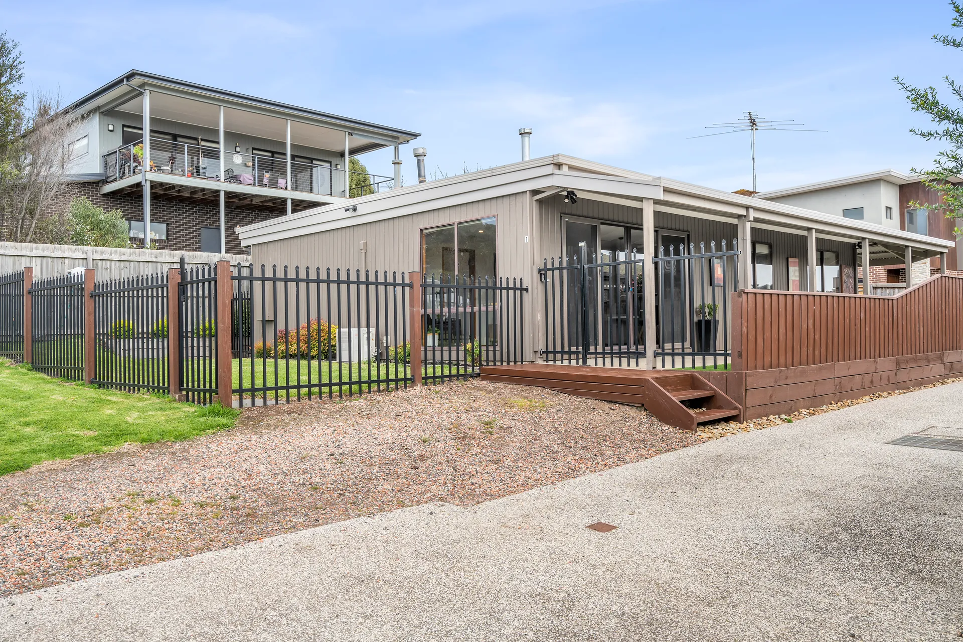 Due to the yard being small, the property really only suits small dogs. The side yard has artificial grass but there is a fenced lawn area at the front.
